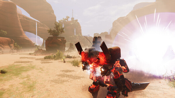 You pilot the Desert Raptor MKII, a Mech of extraordinary power. It is a highly-customizable battle vehicle that can be equipped with a variety of offensive systems: heavy, high-powered melee weapons, steam powered hydraulic siege weapons, explosive firearms, and more. It can also be equipped with a variety of defensive systems; high-speed thrusters, boosters for dashing, riot shields, among others.